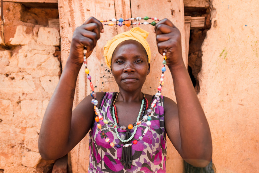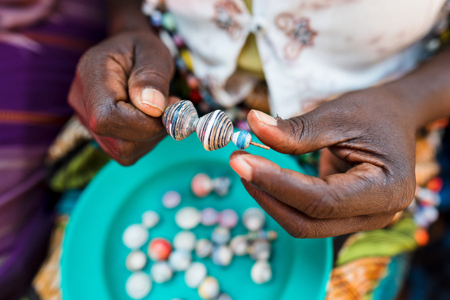 PEARLS OF AFRICA ist dein Onlineshop für nachhaltigen und fairen Schmuck, Dekoration und Accessoires aus Afrika. Unsere Produkte bestehen aus Recyclingpapier oder Recyclingglas und entstehen in liebevoller Handarbeit. Mit dem Verkauf dieser wunderschönen, handgefertigten PEARLS OF AFRICA fördern wir die Selbständigkeit von 60+ Flüchtlingsfrauen und ihren Familien der Emmanuel Group aus Kampala in Uganda, einer Marktfrau in Uganda und einer Handwerkerin in Deutschland.